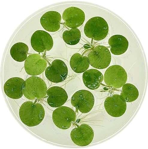Round, bright green leaves attached to thin stems. Can float on the surface or grow submerged in aquariums.