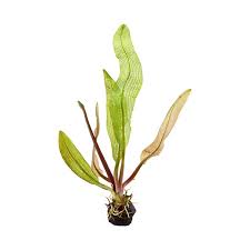 Broad, lance-shaped dark green leaves that grow in a rosette pattern. Can reach moderate height in aquariums.